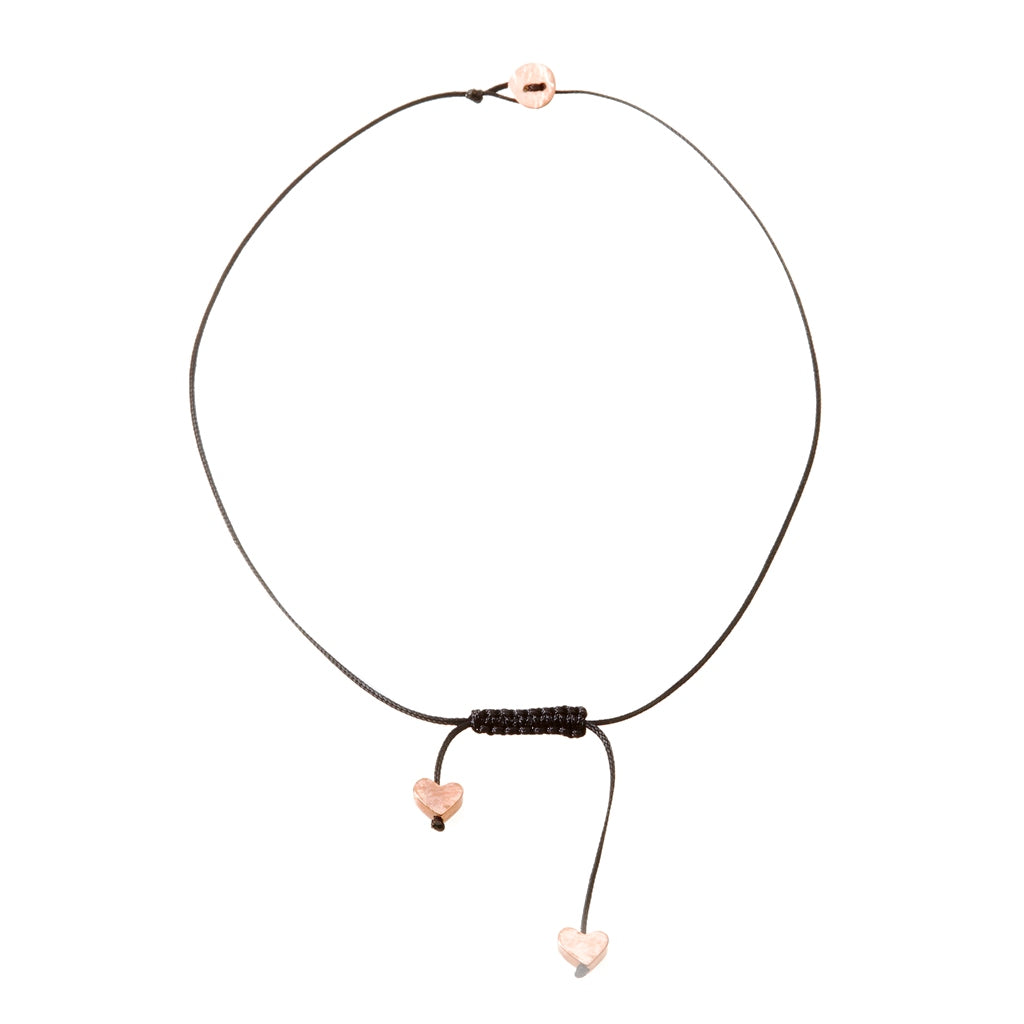 This Macramé necklace with a set of mini Heart pendants is all the rage.