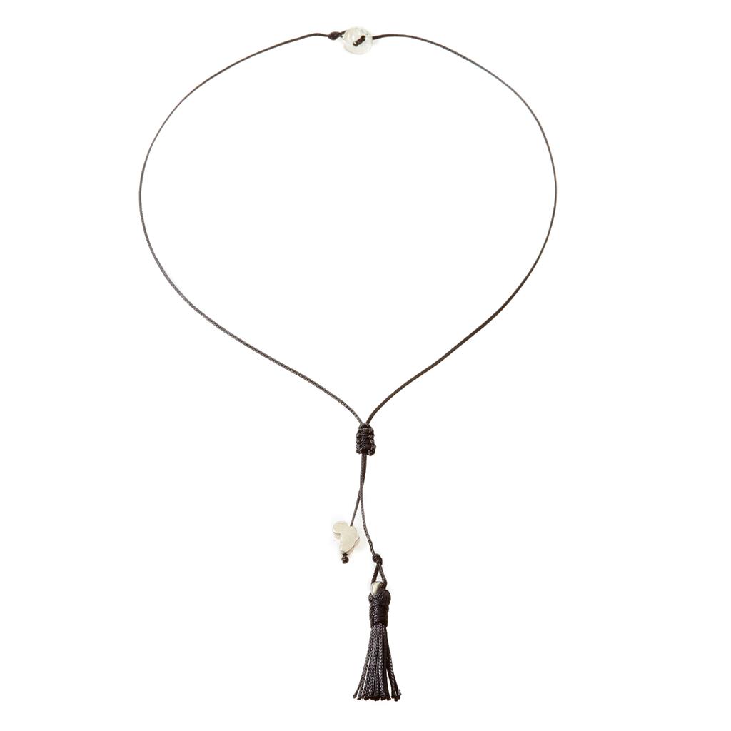 Put your flirty side on wearing this necklace with a tiny tassel and cute Africa pendant.